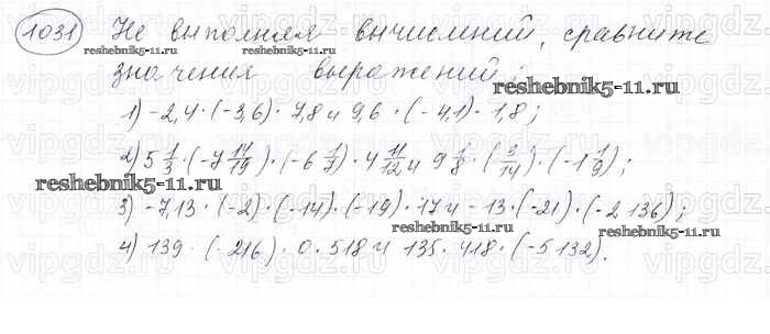 Готовая домашняя работа с ответами по Математике за 6 класс Мерзляк, Полонский, Якир Учебник Алгоритм успеха Вентана-граф 2016 ФГОС - Глава 4. Рациональные числа и действия над ними (упражнения) 1031