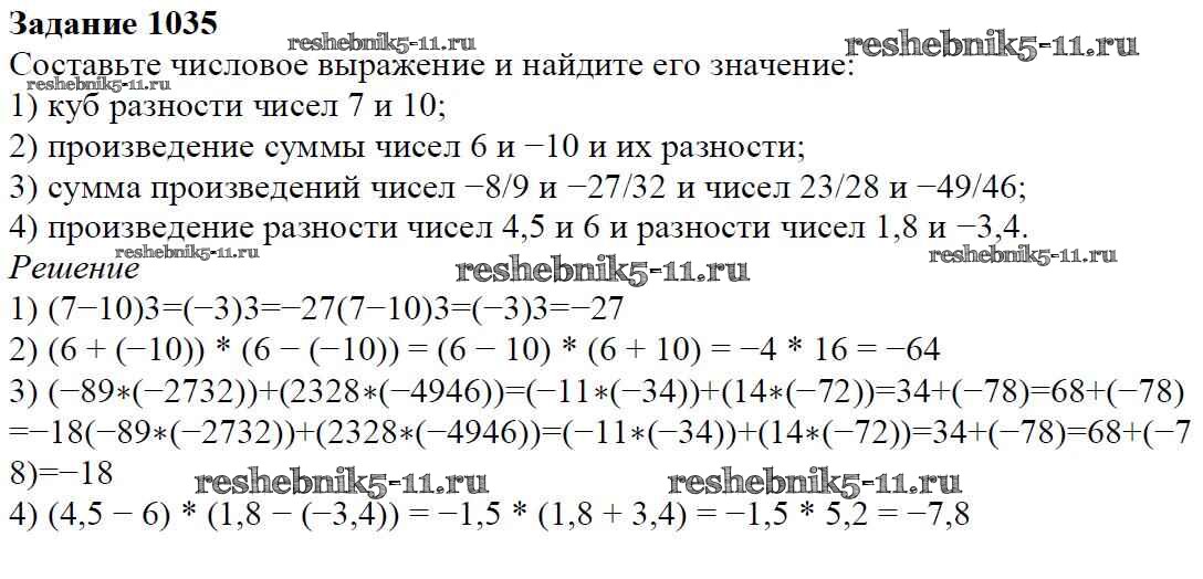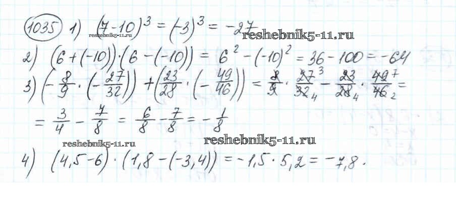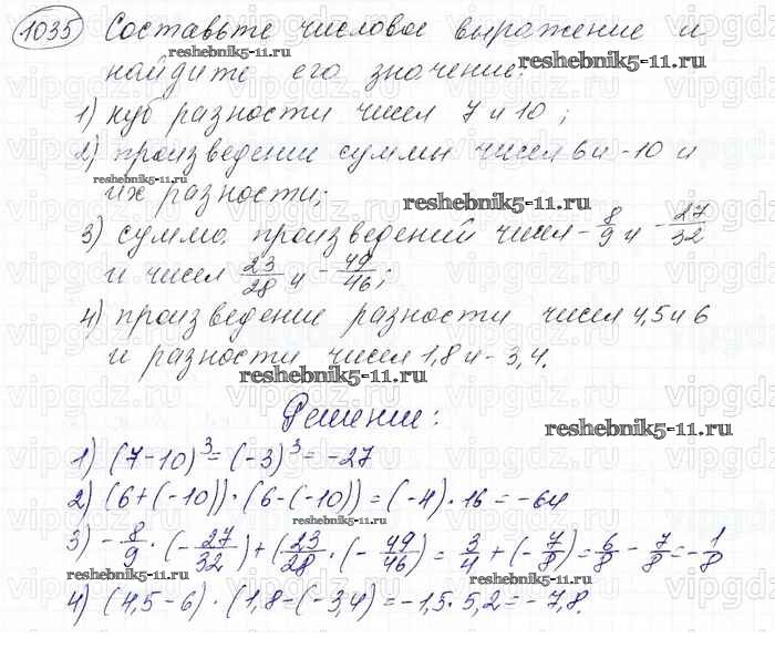 Готовая домашняя работа с ответами по Математике за 6 класс Мерзляк, Полонский, Якир Учебник Алгоритм успеха Вентана-граф 2016 ФГОС - Глава 4. Рациональные числа и действия над ними (упражнения) 1035
