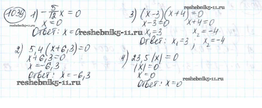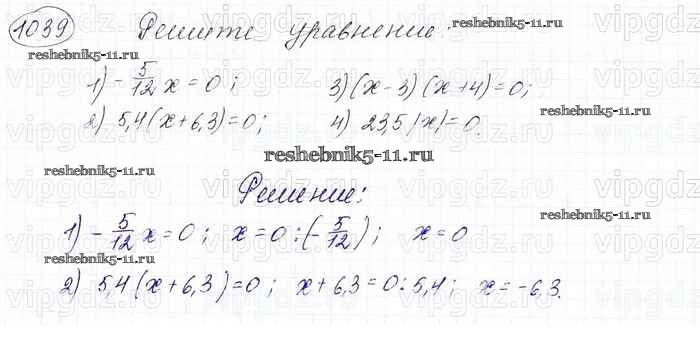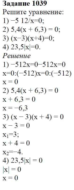 Готовая домашняя работа с ответами по Математике за 6 класс Мерзляк, Полонский, Якир Учебник Алгоритм успеха Вентана-граф 2016 ФГОС - Глава 4. Рациональные числа и действия над ними (упражнения) 1039