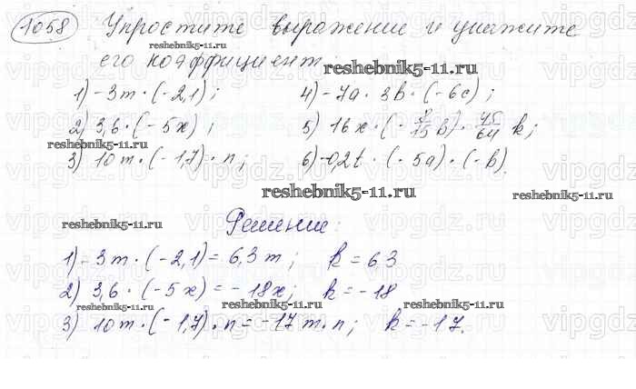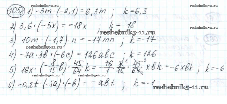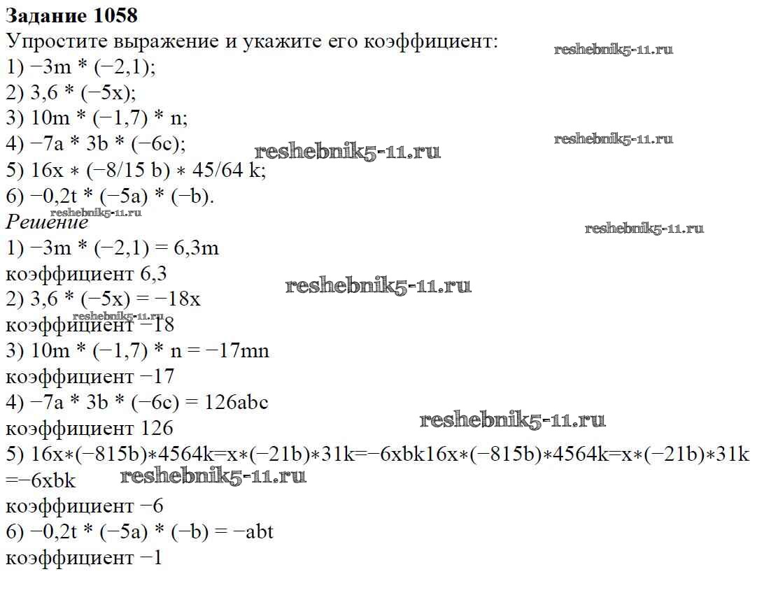 Готовая домашняя работа с ответами по Математике за 6 класс Мерзляк, Полонский, Якир Учебник Алгоритм успеха Вентана-граф 2016 ФГОС - Глава 4. Рациональные числа и действия над ними (упражнения) 1058