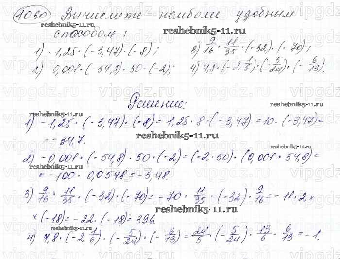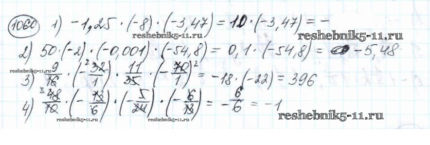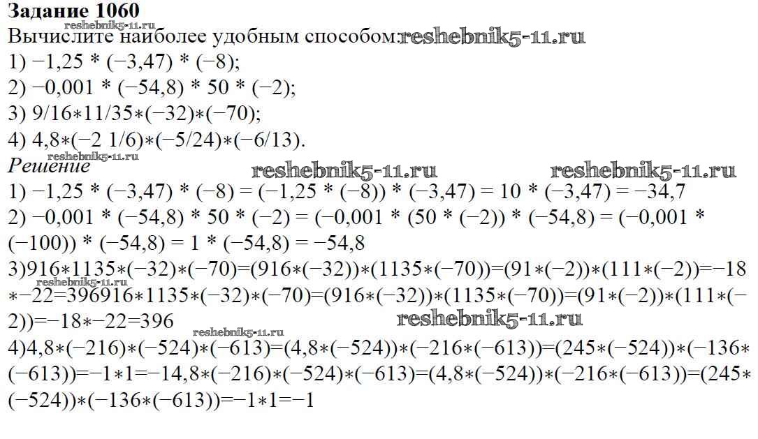 Готовая домашняя работа с ответами по Математике за 6 класс Мерзляк, Полонский, Якир Учебник Алгоритм успеха Вентана-граф 2016 ФГОС - Глава 4. Рациональные числа и действия над ними (упражнения) 1060
