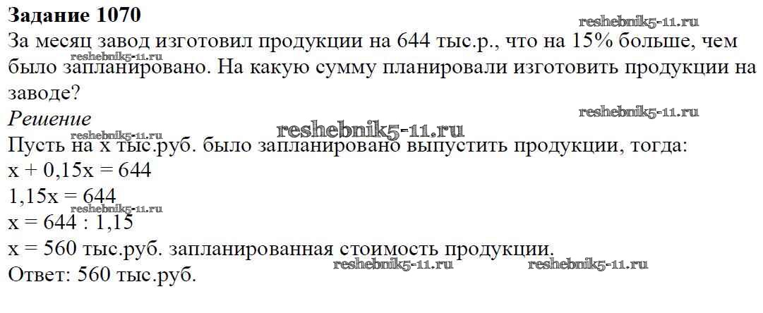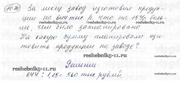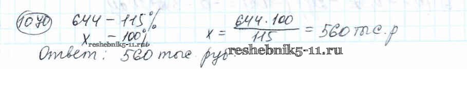 Готовая домашняя работа с ответами по Математике за 6 класс Мерзляк, Полонский, Якир Учебник Алгоритм успеха Вентана-граф 2016 ФГОС - Глава 4. Рациональные числа и действия над ними (упражнения) 1070