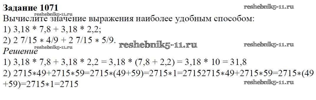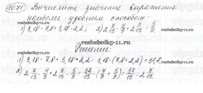 Готовая домашняя работа с ответами по Математике за 6 класс Мерзляк, Полонский, Якир Учебник Алгоритм успеха Вентана-граф 2016 ФГОС - Глава 4. Рациональные числа и действия над ними (упражнения) 1071