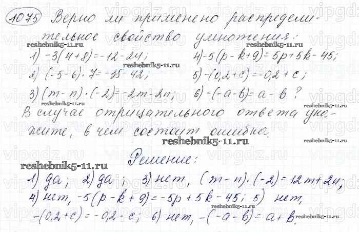 Готовая домашняя работа с ответами по Математике за 6 класс Мерзляк, Полонский, Якир Учебник Алгоритм успеха Вентана-граф 2016 ФГОС - Глава 4. Рациональные числа и действия над ними (упражнения) 1075