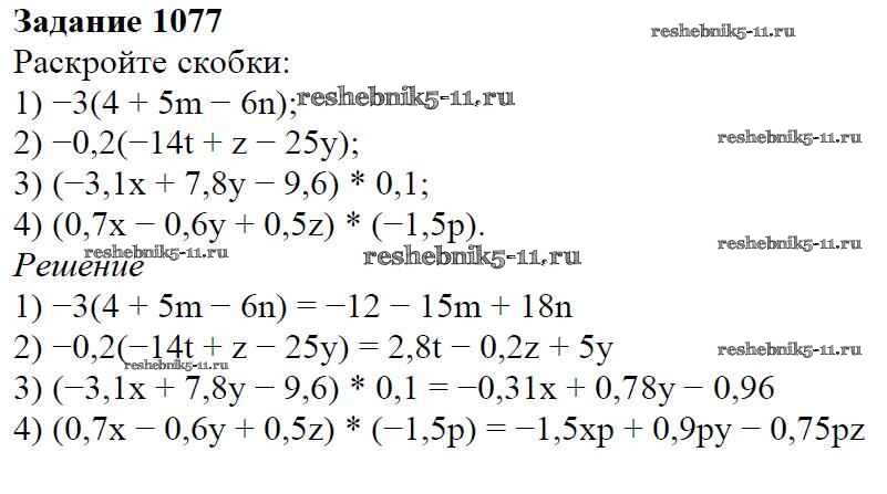 Готовая домашняя работа с ответами по Математике за 6 класс Мерзляк, Полонский, Якир Учебник Алгоритм успеха Вентана-граф 2016 ФГОС - Глава 4. Рациональные числа и действия над ними (упражнения) 1077