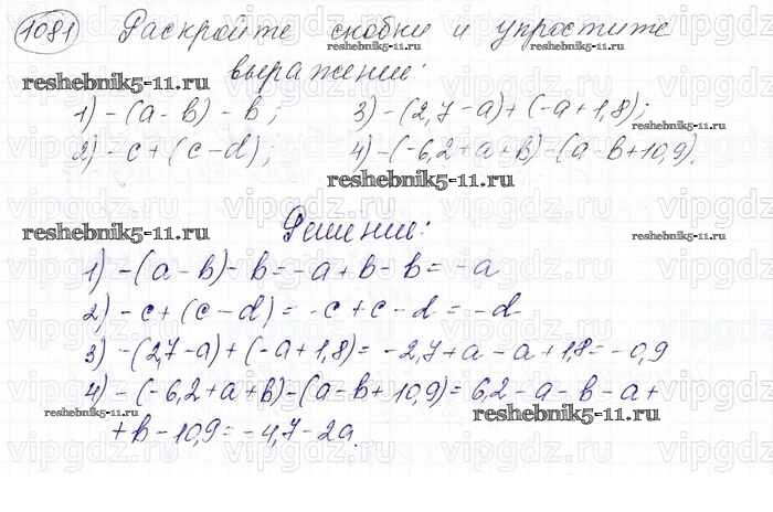 Готовая домашняя работа с ответами по Математике за 6 класс Мерзляк, Полонский, Якир Учебник Алгоритм успеха Вентана-граф 2016 ФГОС - Глава 4. Рациональные числа и действия над ними (упражнения) 1081