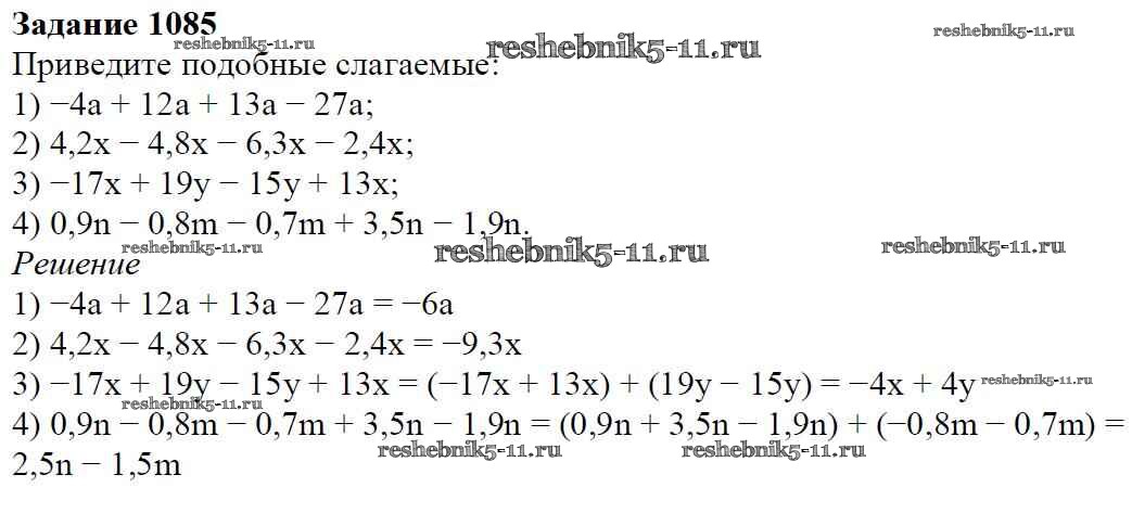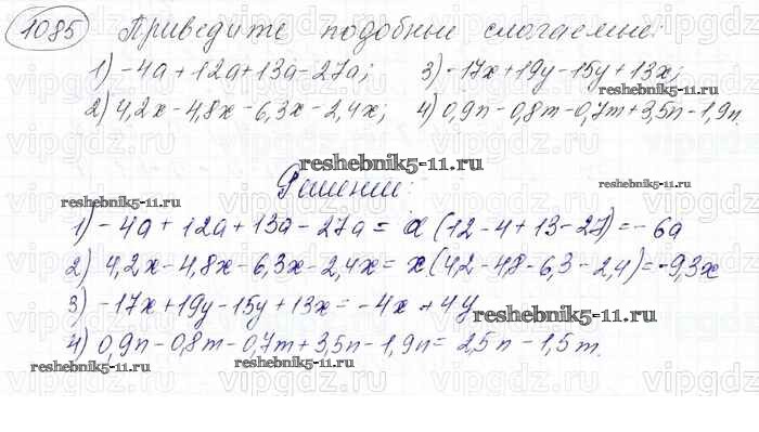 Готовая домашняя работа с ответами по Математике за 6 класс Мерзляк, Полонский, Якир Учебник Алгоритм успеха Вентана-граф 2016 ФГОС - Глава 4. Рациональные числа и действия над ними (упражнения) 1085