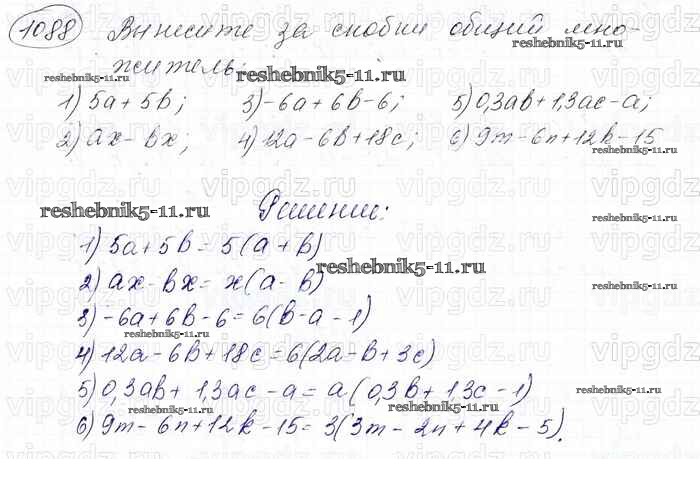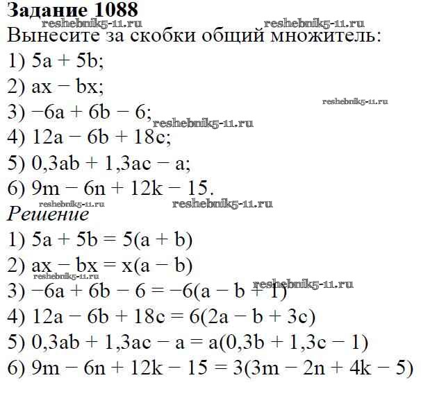 Готовая домашняя работа с ответами по Математике за 6 класс Мерзляк, Полонский, Якир Учебник Алгоритм успеха Вентана-граф 2016 ФГОС - Глава 4. Рациональные числа и действия над ними (упражнения) 1088