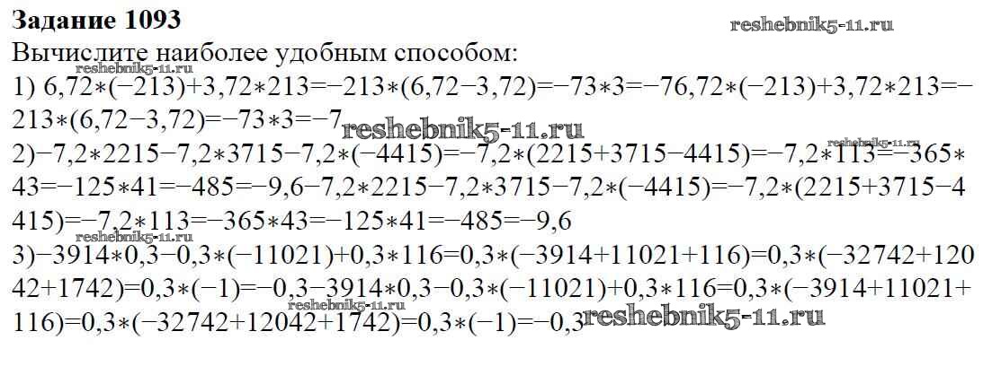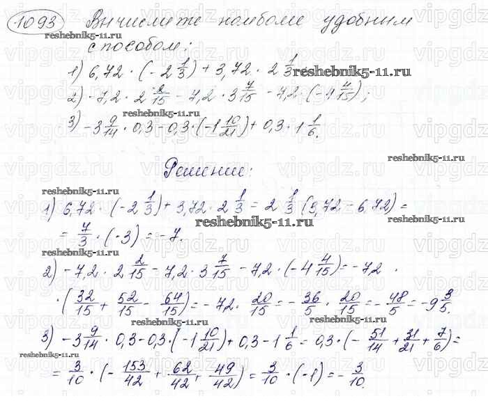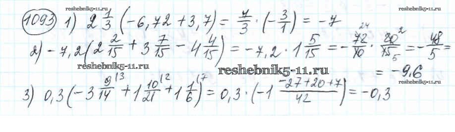 Готовая домашняя работа с ответами по Математике за 6 класс Мерзляк, Полонский, Якир Учебник Алгоритм успеха Вентана-граф 2016 ФГОС - Глава 4. Рациональные числа и действия над ними (упражнения) 1093