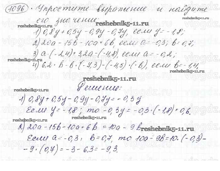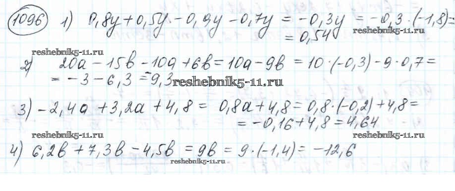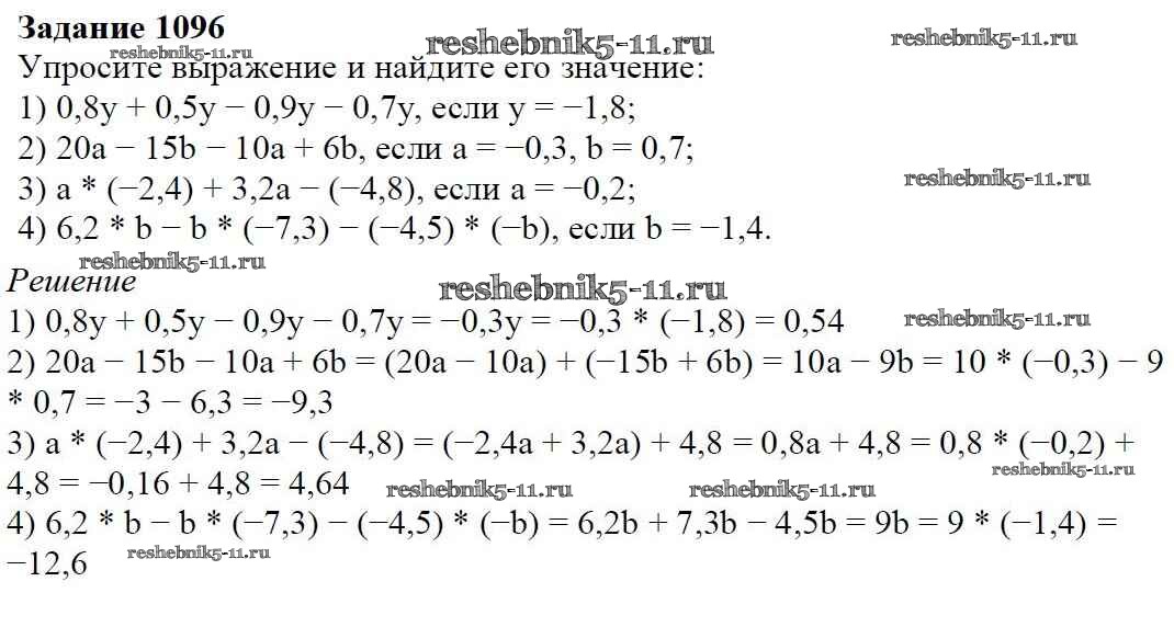 Готовая домашняя работа с ответами по Математике за 6 класс Мерзляк, Полонский, Якир Учебник Алгоритм успеха Вентана-граф 2016 ФГОС - Глава 4. Рациональные числа и действия над ними (упражнения) 1096