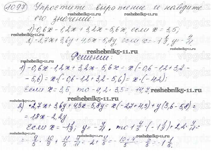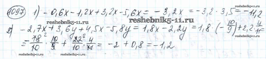 Готовая домашняя работа с ответами по Математике за 6 класс Мерзляк, Полонский, Якир Учебник Алгоритм успеха Вентана-граф 2016 ФГОС - Глава 4. Рациональные числа и действия над ними (упражнения) 1097