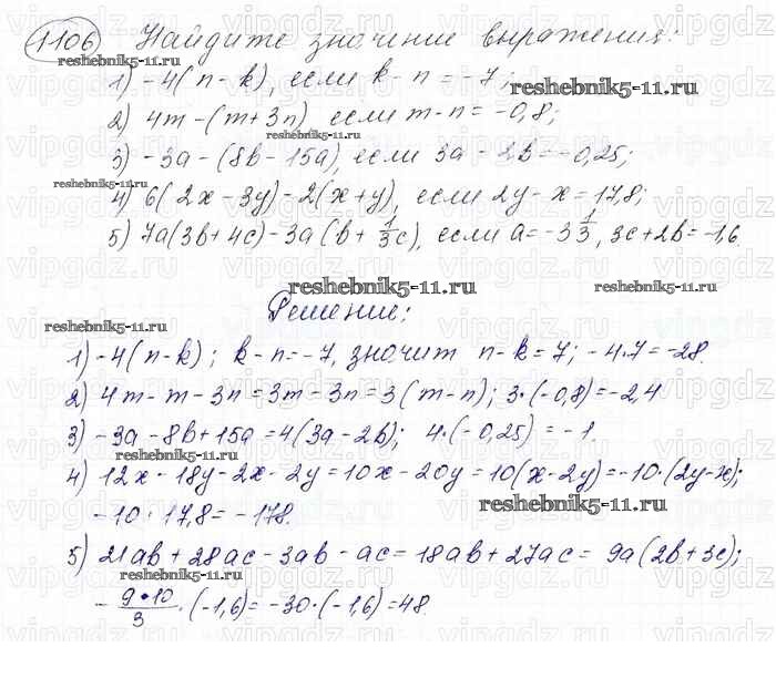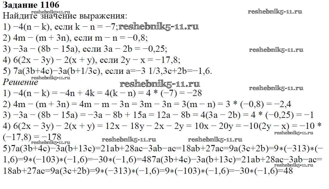 Готовая домашняя работа с ответами по Математике за 6 класс Мерзляк, Полонский, Якир Учебник Алгоритм успеха Вентана-граф 2016 ФГОС - Глава 4. Рациональные числа и действия над ними (упражнения) 1106