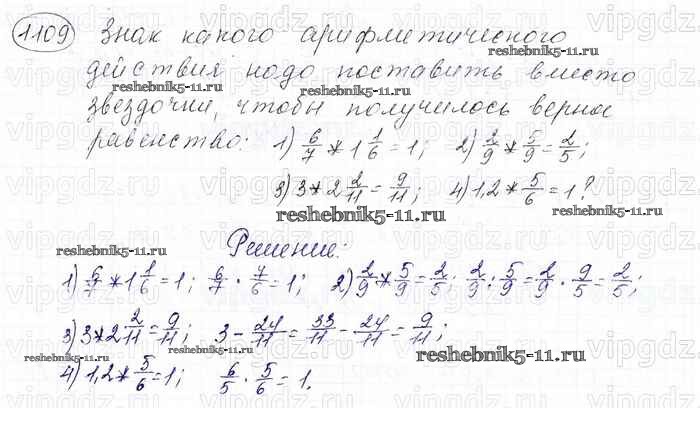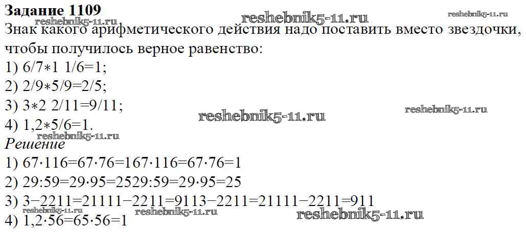Готовая домашняя работа с ответами по Математике за 6 класс Мерзляк, Полонский, Якир Учебник Алгоритм успеха Вентана-граф 2016 ФГОС - Глава 4. Рациональные числа и действия над ними (упражнения) 1109