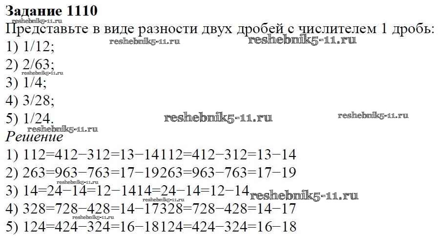 Готовая домашняя работа с ответами по Математике за 6 класс Мерзляк, Полонский, Якир Учебник Алгоритм успеха Вентана-граф 2016 ФГОС - Глава 4. Рациональные числа и действия над ними (упражнения) 1110