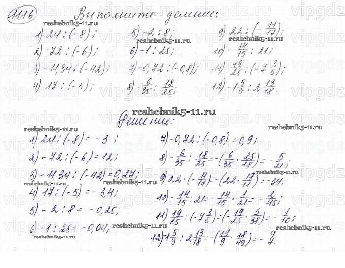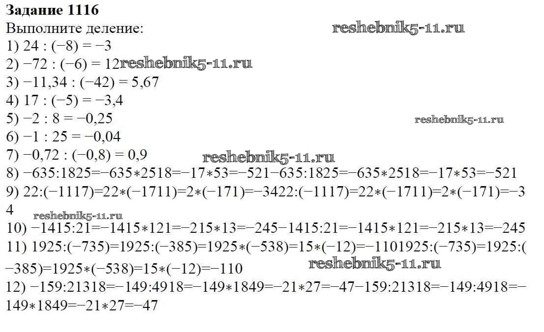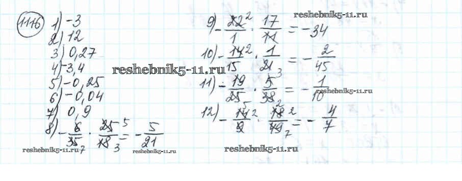 Готовая домашняя работа с ответами по Математике за 6 класс Мерзляк, Полонский, Якир Учебник Алгоритм успеха Вентана-граф 2016 ФГОС - Глава 4. Рациональные числа и действия над ними (упражнения) 1116