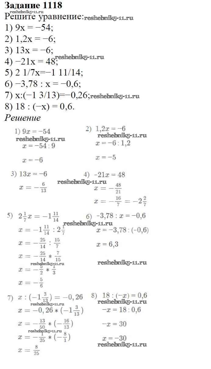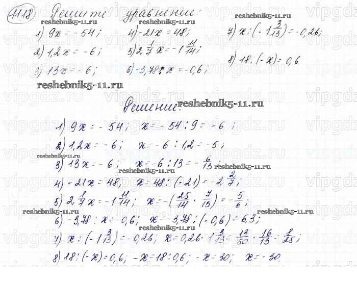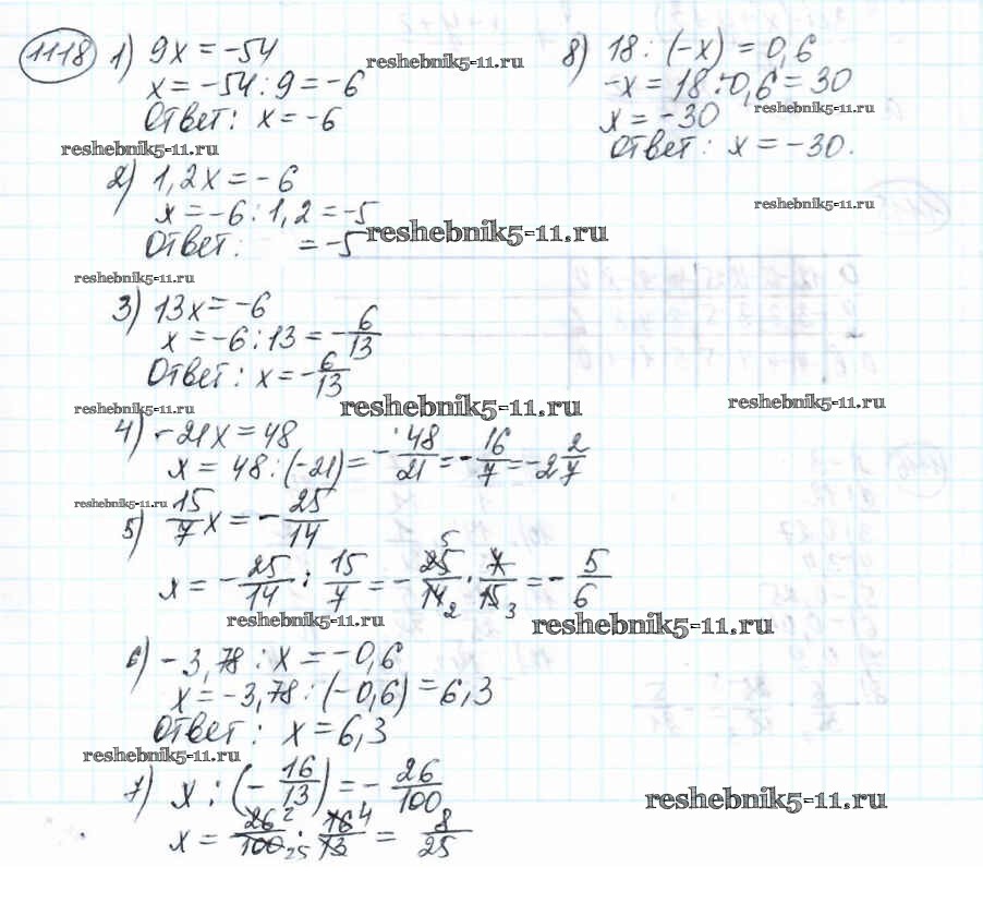 Готовая домашняя работа с ответами по Математике за 6 класс Мерзляк, Полонский, Якир Учебник Алгоритм успеха Вентана-граф 2016 ФГОС - Глава 4. Рациональные числа и действия над ними (упражнения) 1118