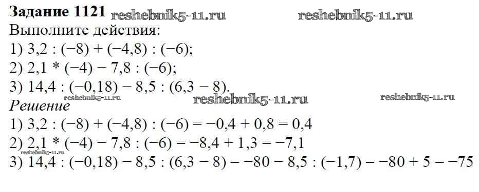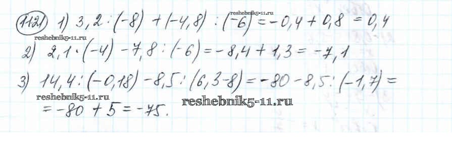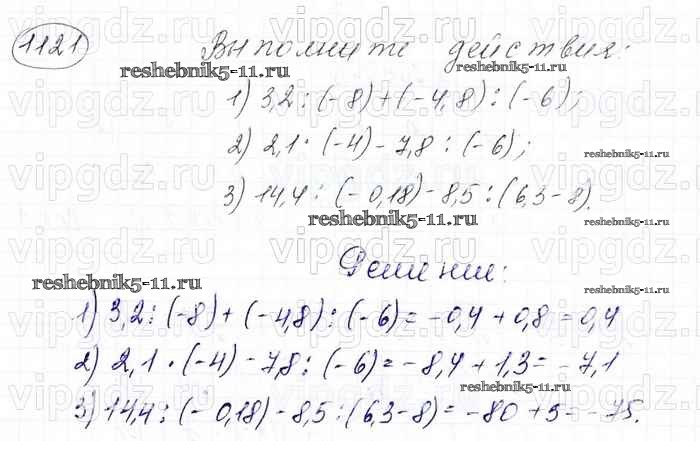 Готовая домашняя работа с ответами по Математике за 6 класс Мерзляк, Полонский, Якир Учебник Алгоритм успеха Вентана-граф 2016 ФГОС - Глава 4. Рациональные числа и действия над ними (упражнения) 1121