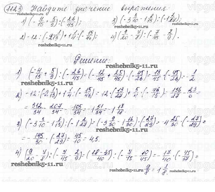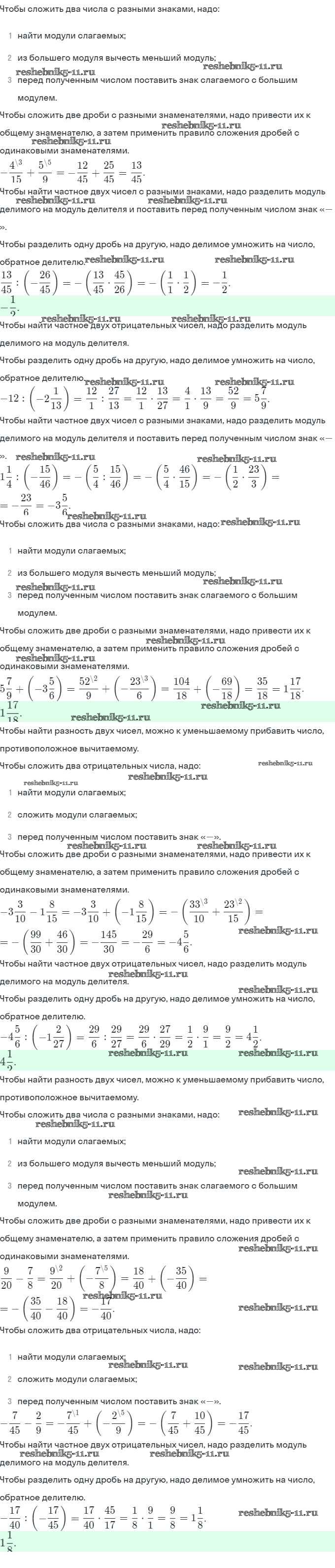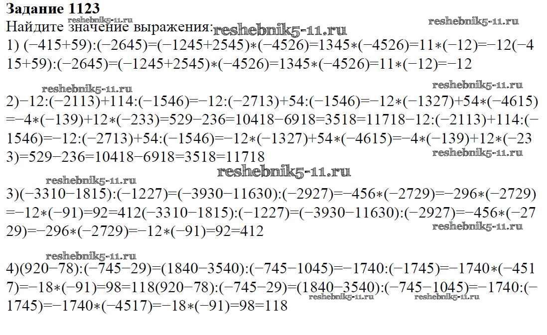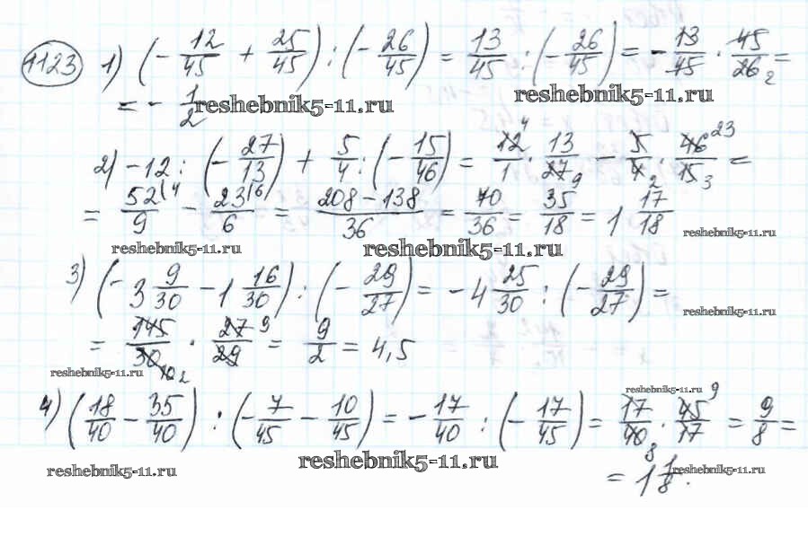 Готовая домашняя работа с ответами по Математике за 6 класс Мерзляк, Полонский, Якир Учебник Алгоритм успеха Вентана-граф 2016 ФГОС - Глава 4. Рациональные числа и действия над ними (упражнения) 1123