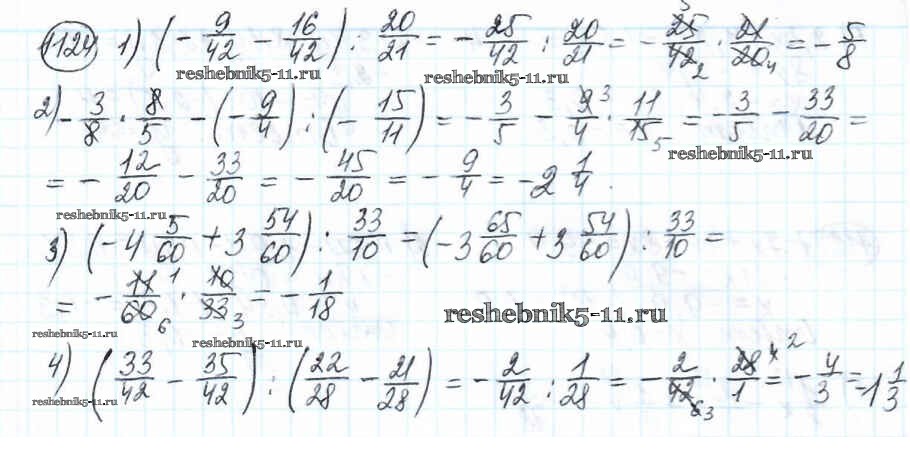 Готовая домашняя работа с ответами по Математике за 6 класс Мерзляк, Полонский, Якир Учебник Алгоритм успеха Вентана-граф 2016 ФГОС - Глава 4. Рациональные числа и действия над ними (упражнения) 1124