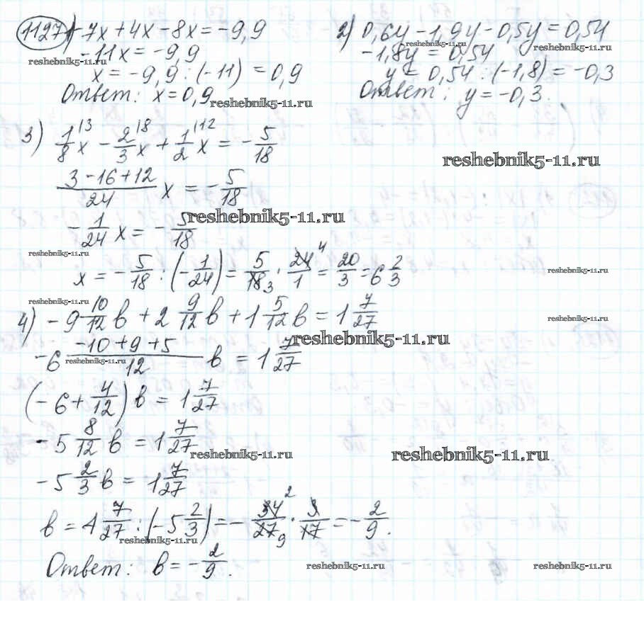 Готовая домашняя работа с ответами по Математике за 6 класс Мерзляк, Полонский, Якир Учебник Алгоритм успеха Вентана-граф 2016 ФГОС - Глава 4. Рациональные числа и действия над ними (упражнения) 1127