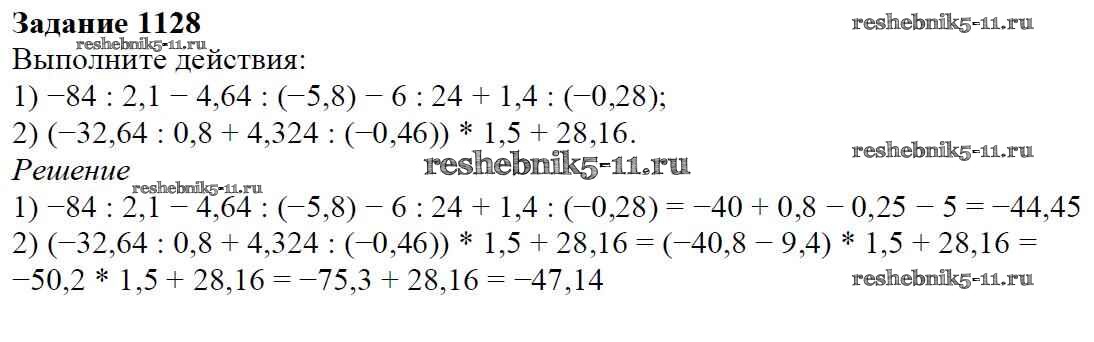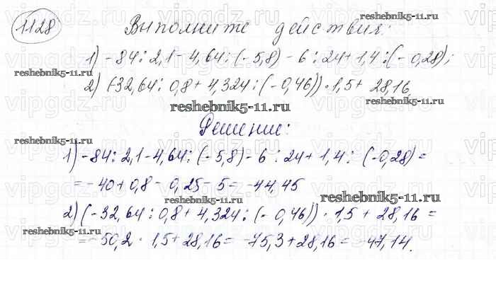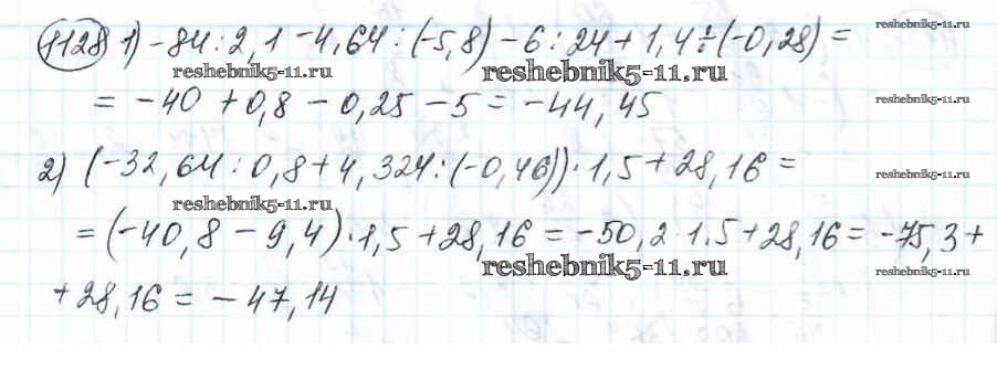 Готовая домашняя работа с ответами по Математике за 6 класс Мерзляк, Полонский, Якир Учебник Алгоритм успеха Вентана-граф 2016 ФГОС - Глава 4. Рациональные числа и действия над ними (упражнения) 1128