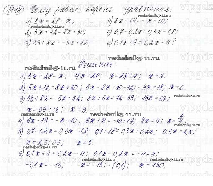 Готовая домашняя работа с ответами по Математике за 6 класс Мерзляк, Полонский, Якир Учебник Алгоритм успеха Вентана-граф 2016 ФГОС - Глава 4. Рациональные числа и действия над ними (упражнения) 1144