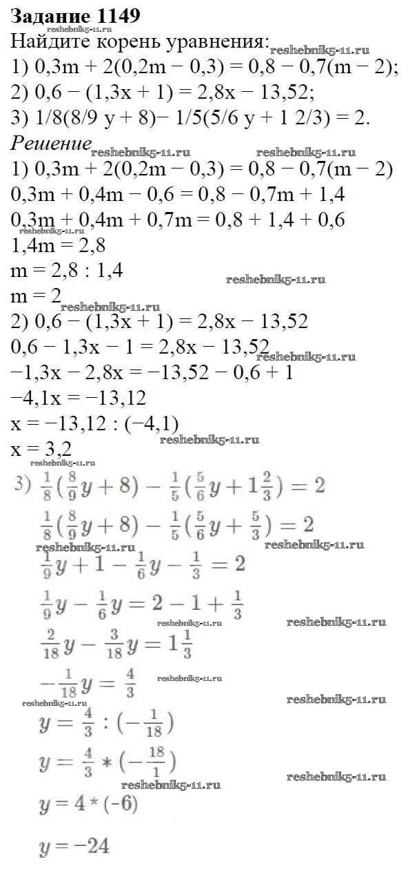 Готовая домашняя работа с ответами по Математике за 6 класс Мерзляк, Полонский, Якир Учебник Алгоритм успеха Вентана-граф 2016 ФГОС - Глава 4. Рациональные числа и действия над ними (упражнения) 1149
