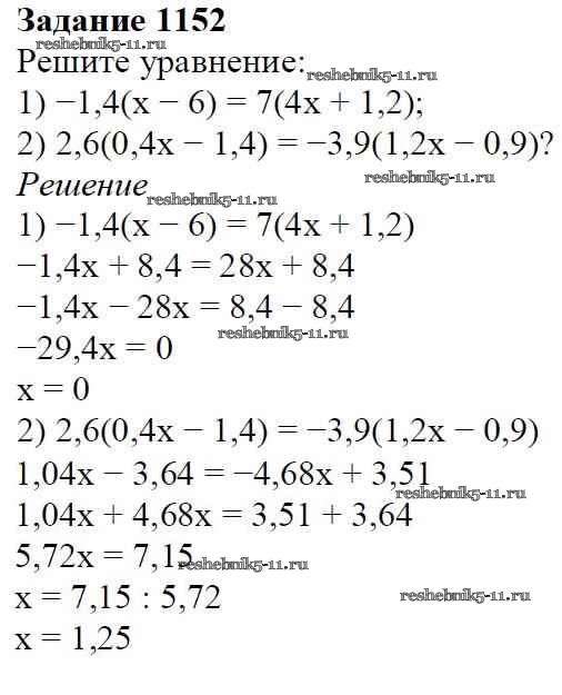Готовая домашняя работа с ответами по Математике за 6 класс Мерзляк, Полонский, Якир Учебник Алгоритм успеха Вентана-граф 2016 ФГОС - Глава 4. Рациональные числа и действия над ними (упражнения) 1152