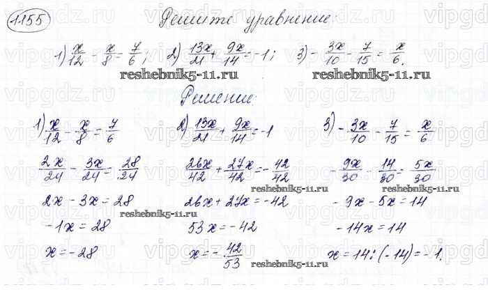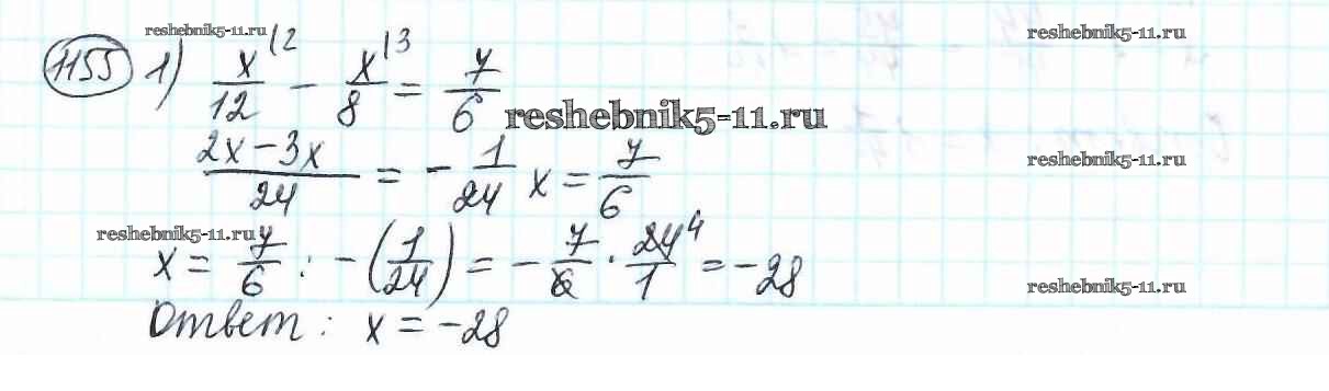 Готовая домашняя работа с ответами по Математике за 6 класс Мерзляк, Полонский, Якир Учебник Алгоритм успеха Вентана-граф 2016 ФГОС - Глава 4. Рациональные числа и действия над ними (упражнения) 1155