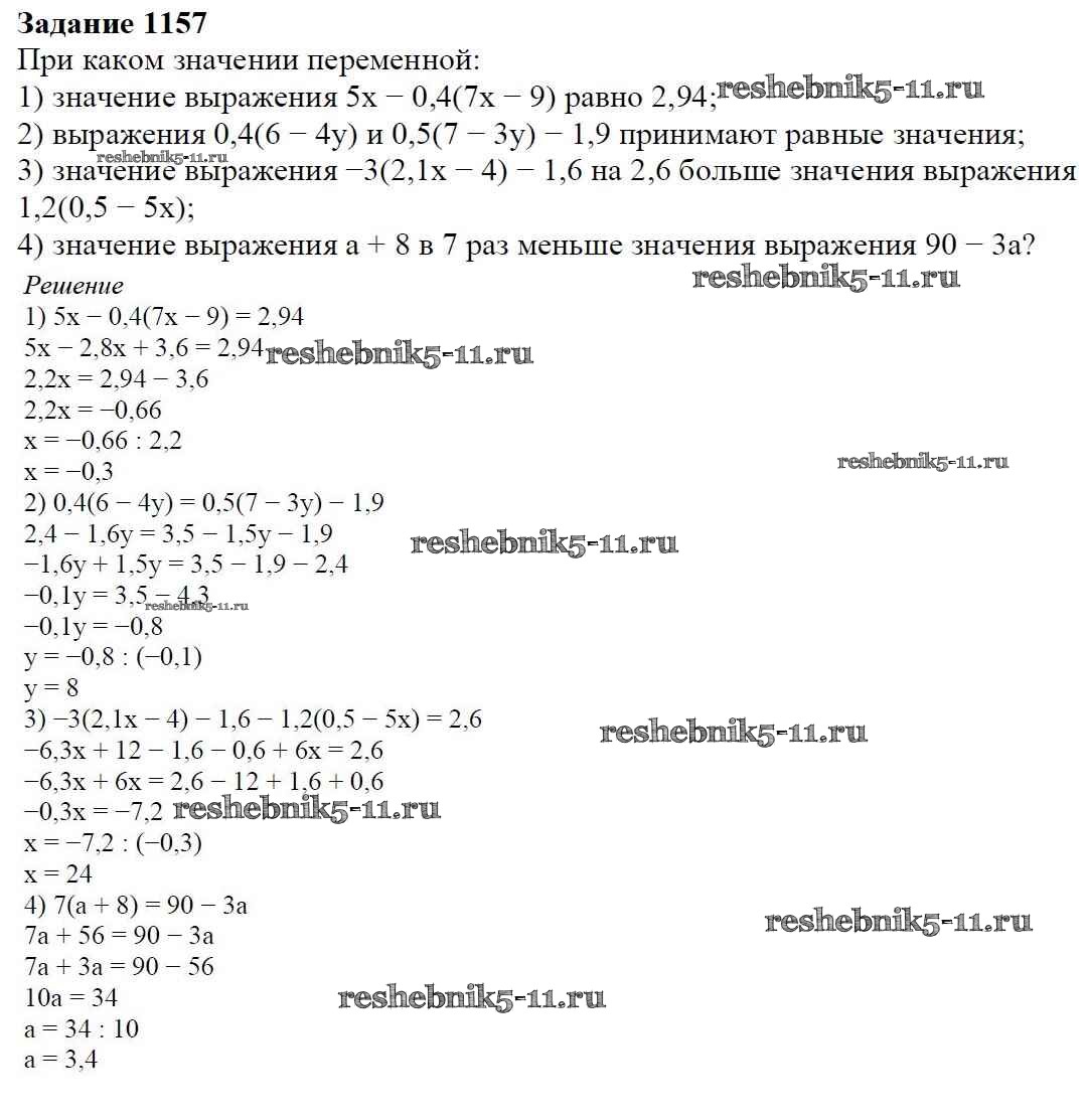 Готовая домашняя работа с ответами по Математике за 6 класс Мерзляк, Полонский, Якир Учебник Алгоритм успеха Вентана-граф 2016 ФГОС - Глава 4. Рациональные числа и действия над ними (упражнения) 1157