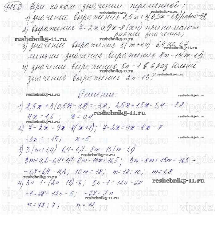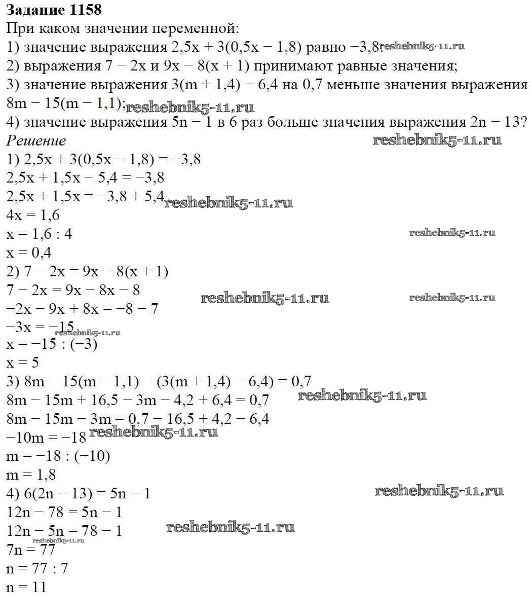 Готовая домашняя работа с ответами по Математике за 6 класс Мерзляк, Полонский, Якир Учебник Алгоритм успеха Вентана-граф 2016 ФГОС - Глава 4. Рациональные числа и действия над ними (упражнения) 1158