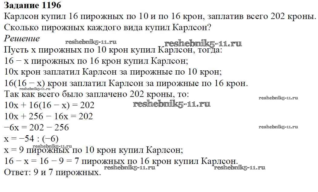 Готовая домашняя работа с ответами по Математике за 6 класс Мерзляк, Полонский, Якир Учебник Алгоритм успеха Вентана-граф 2016 ФГОС - Глава 4. Рациональные числа и действия над ними (упражнения) 1196