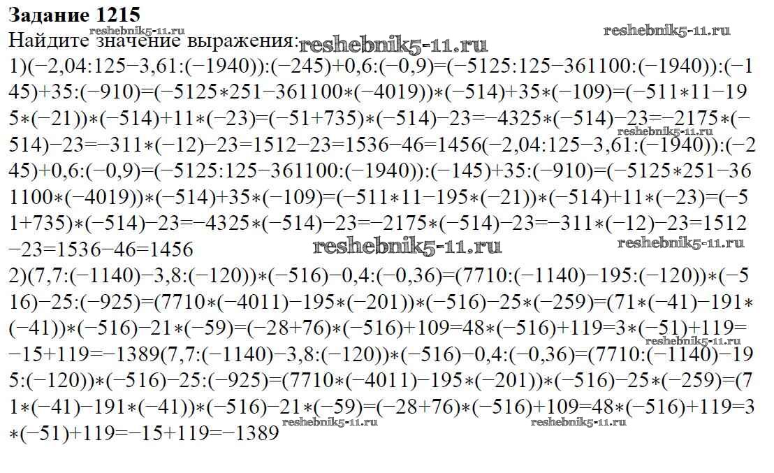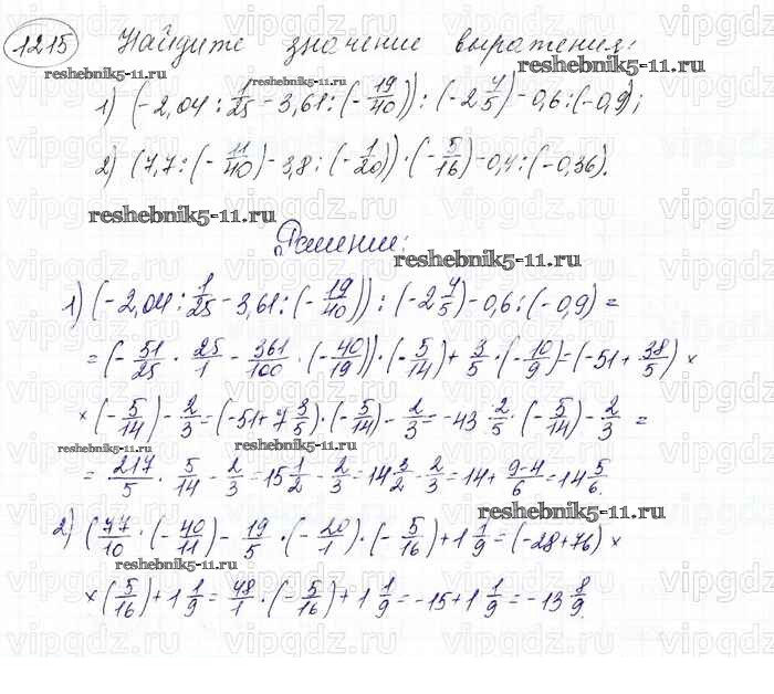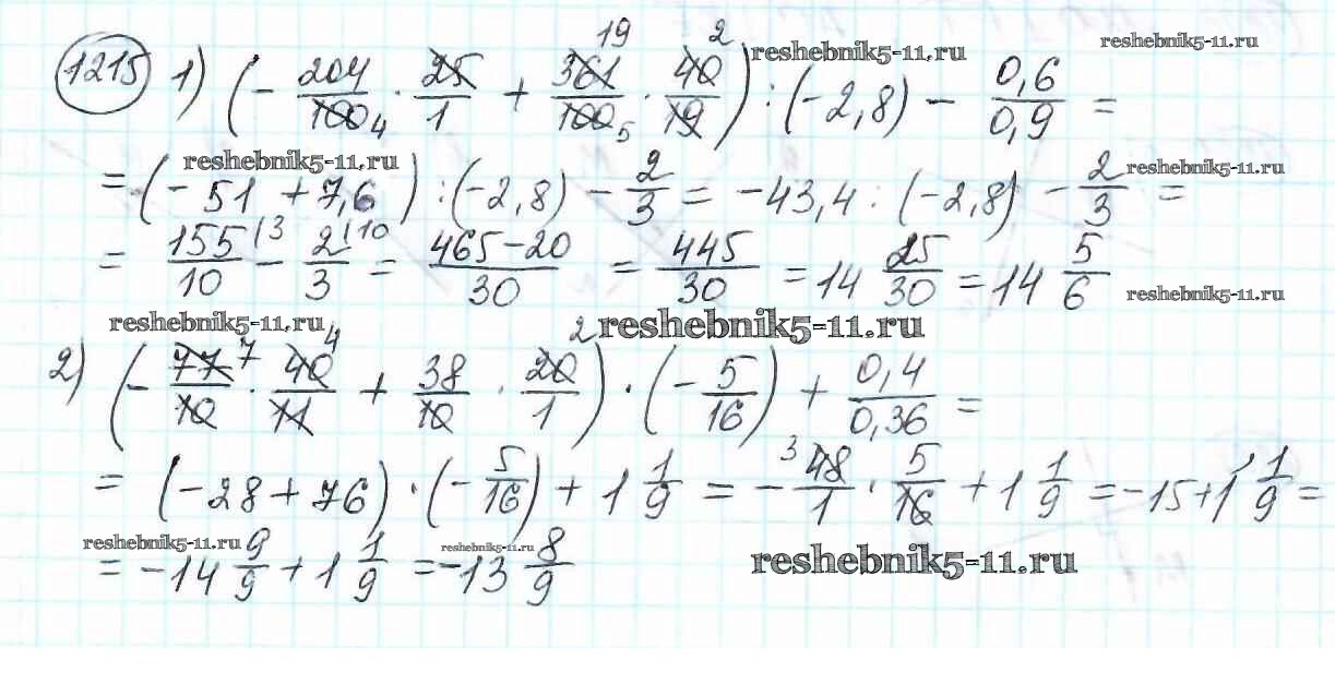 Готовая домашняя работа с ответами по Математике за 6 класс Мерзляк, Полонский, Якир Учебник Алгоритм успеха Вентана-граф 2016 ФГОС - Глава 4. Рациональные числа и действия над ними (упражнения) 1215
