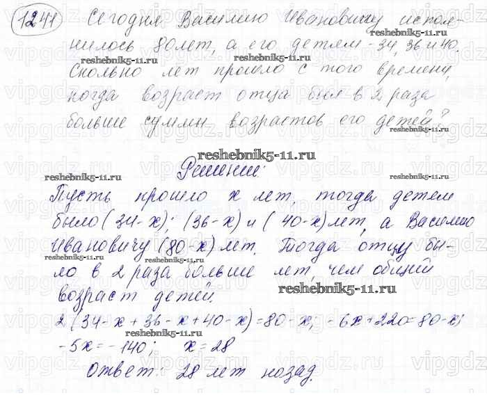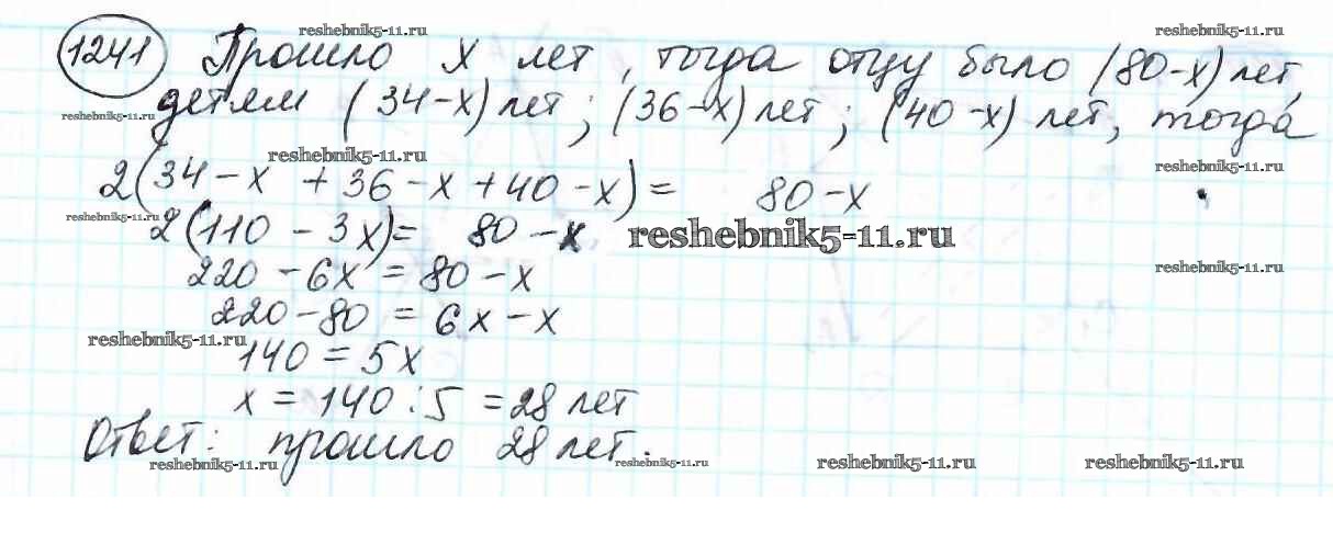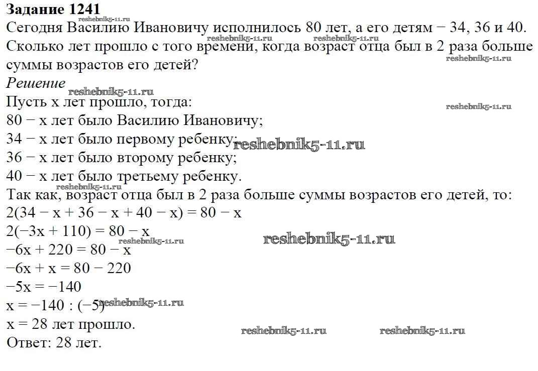 Готовая домашняя работа с ответами по Математике за 6 класс Мерзляк, Полонский, Якир Учебник Алгоритм успеха Вентана-граф 2016 ФГОС - Глава 4. Рациональные числа и действия над ними (упражнения) 1241