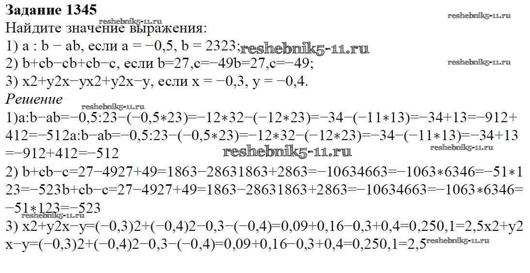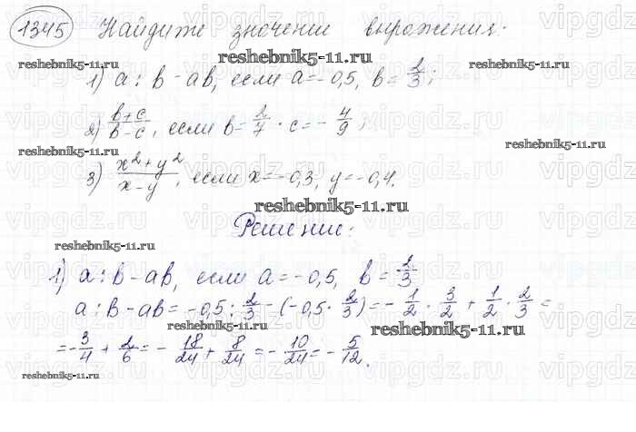 Готовая домашняя работа с ответами по Математике за 6 класс Мерзляк, Полонский, Якир Учебник Алгоритм успеха Вентана-граф 2016 ФГОС - Глава 4. Рациональные числа и действия над ними (упражнения) 1345
