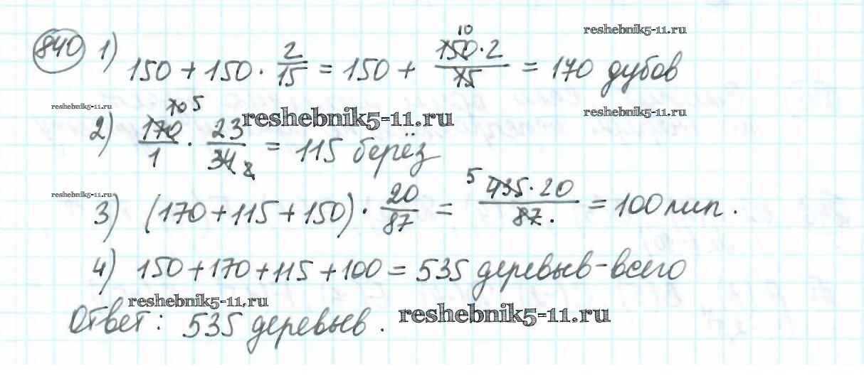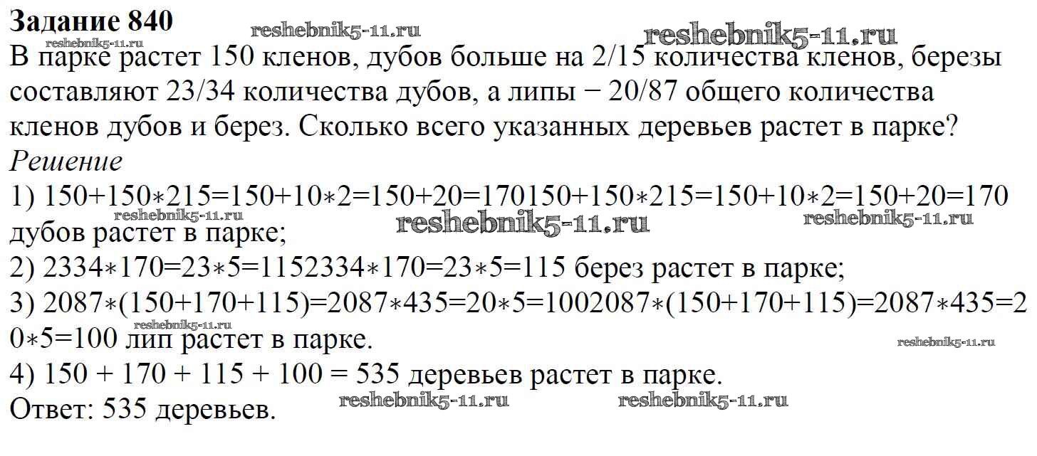 Готовая домашняя работа с ответами по Математике за 6 класс Мерзляк, Полонский, Якир Учебник Алгоритм успеха Вентана-граф 2016 ФГОС - Глава 4. Рациональные числа и действия над ними (упражнения) 840