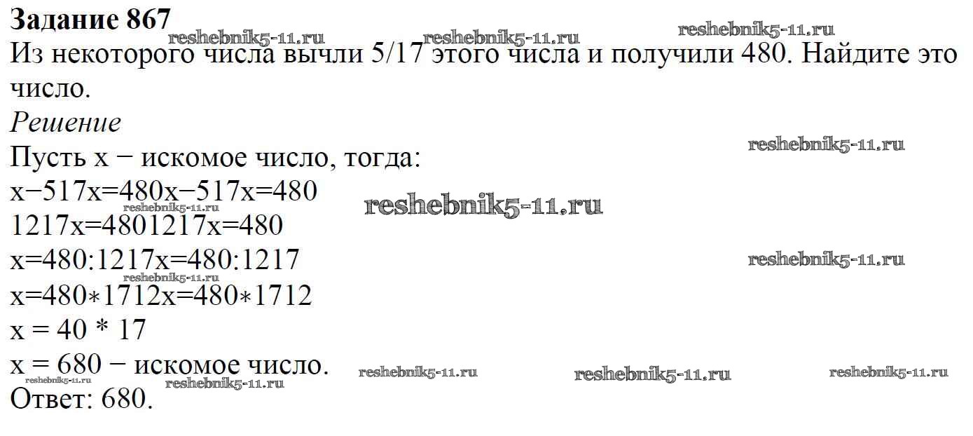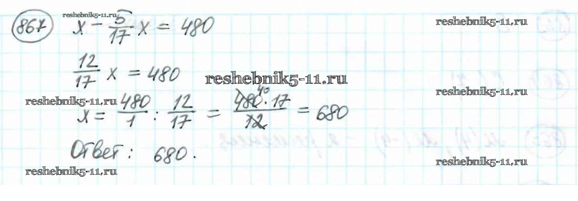 Готовая домашняя работа с ответами по Математике за 6 класс Мерзляк, Полонский, Якир Учебник Алгоритм успеха Вентана-граф 2016 ФГОС - Глава 4. Рациональные числа и действия над ними (упражнения) 867