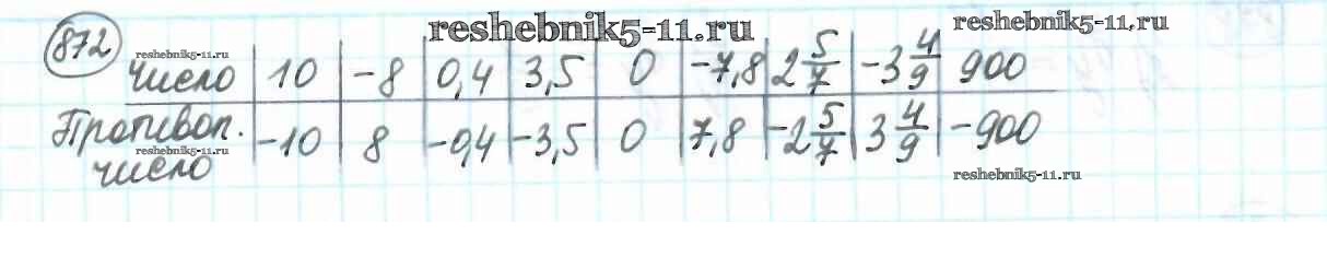 Готовая домашняя работа с ответами по Математике за 6 класс Мерзляк, Полонский, Якир Учебник Алгоритм успеха Вентана-граф 2016 ФГОС - Глава 4. Рациональные числа и действия над ними (упражнения) 872