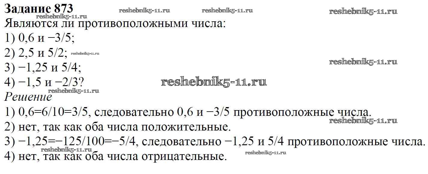 Готовая домашняя работа с ответами по Математике за 6 класс Мерзляк, Полонский, Якир Учебник Алгоритм успеха Вентана-граф 2016 ФГОС - Глава 4. Рациональные числа и действия над ними (упражнения) 873