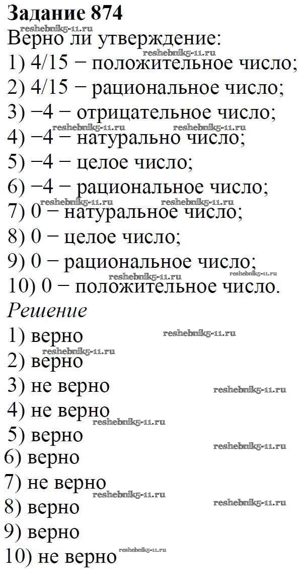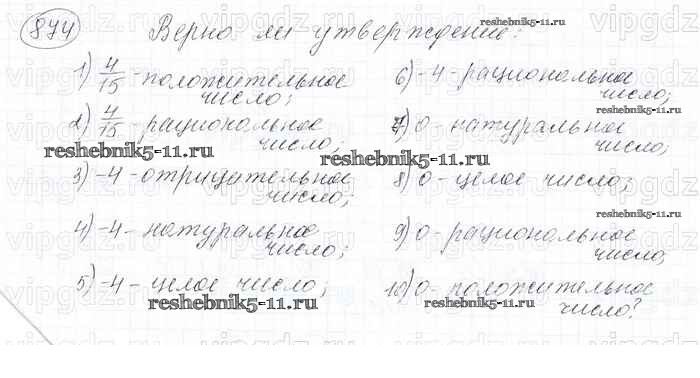 Готовая домашняя работа с ответами по Математике за 6 класс Мерзляк, Полонский, Якир Учебник Алгоритм успеха Вентана-граф 2016 ФГОС - Глава 4. Рациональные числа и действия над ними (упражнения) 874