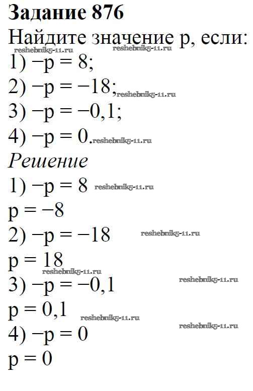 Готовая домашняя работа с ответами по Математике за 6 класс Мерзляк, Полонский, Якир Учебник Алгоритм успеха Вентана-граф 2016 ФГОС - Глава 4. Рациональные числа и действия над ними (упражнения) 876