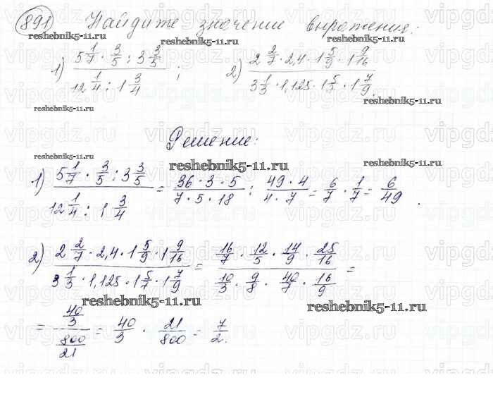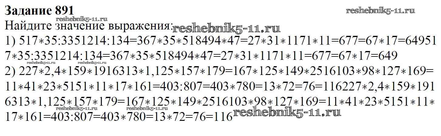 Готовая домашняя работа с ответами по Математике за 6 класс Мерзляк, Полонский, Якир Учебник Алгоритм успеха Вентана-граф 2016 ФГОС - Глава 4. Рациональные числа и действия над ними (упражнения) 891