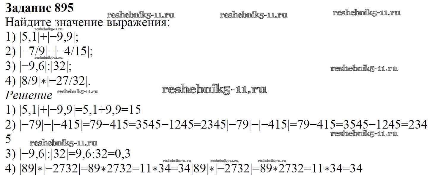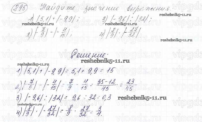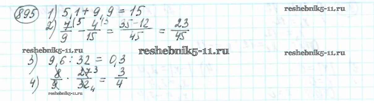 Готовая домашняя работа с ответами по Математике за 6 класс Мерзляк, Полонский, Якир Учебник Алгоритм успеха Вентана-граф 2016 ФГОС - Глава 4. Рациональные числа и действия над ними (упражнения) 895