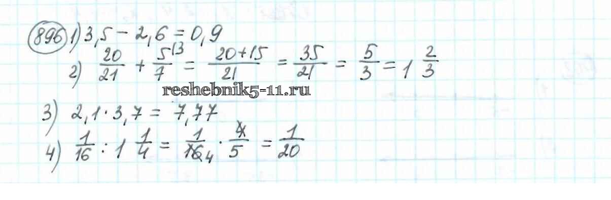 Готовая домашняя работа с ответами по Математике за 6 класс Мерзляк, Полонский, Якир Учебник Алгоритм успеха Вентана-граф 2016 ФГОС - Глава 4. Рациональные числа и действия над ними (упражнения) 896