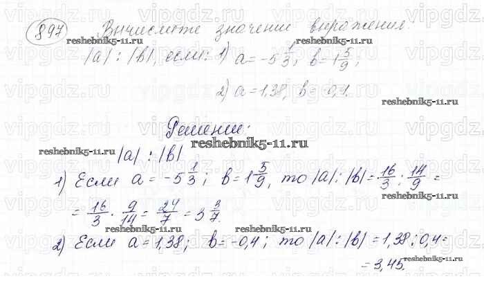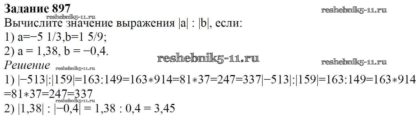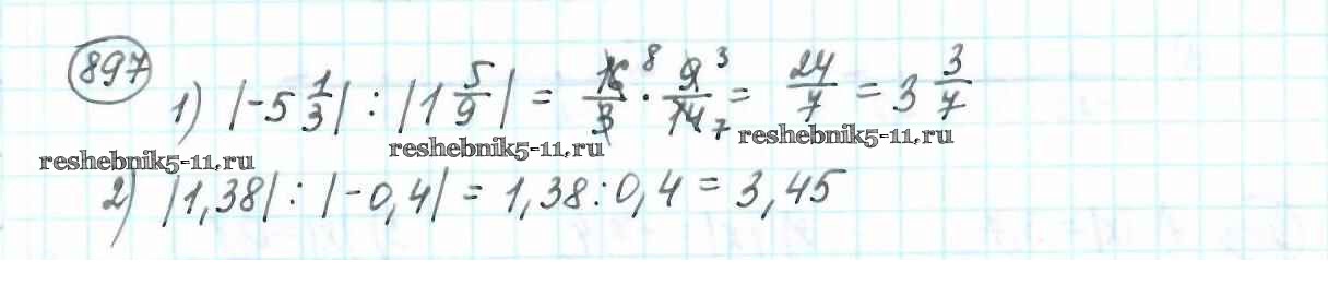Готовая домашняя работа с ответами по Математике за 6 класс Мерзляк, Полонский, Якир Учебник Алгоритм успеха Вентана-граф 2016 ФГОС - Глава 4. Рациональные числа и действия над ними (упражнения) 897
