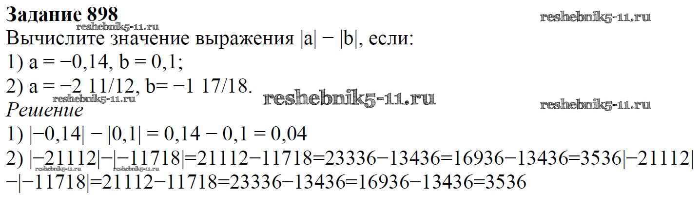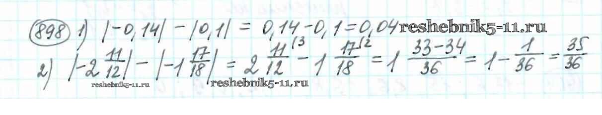 Готовая домашняя работа с ответами по Математике за 6 класс Мерзляк, Полонский, Якир Учебник Алгоритм успеха Вентана-граф 2016 ФГОС - Глава 4. Рациональные числа и действия над ними (упражнения) 898
