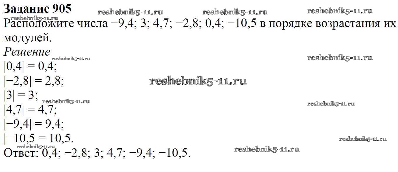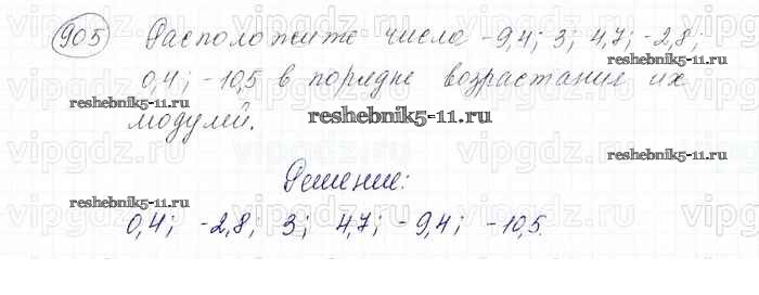 Готовая домашняя работа с ответами по Математике за 6 класс Мерзляк, Полонский, Якир Учебник Алгоритм успеха Вентана-граф 2016 ФГОС - Глава 4. Рациональные числа и действия над ними (упражнения) 905