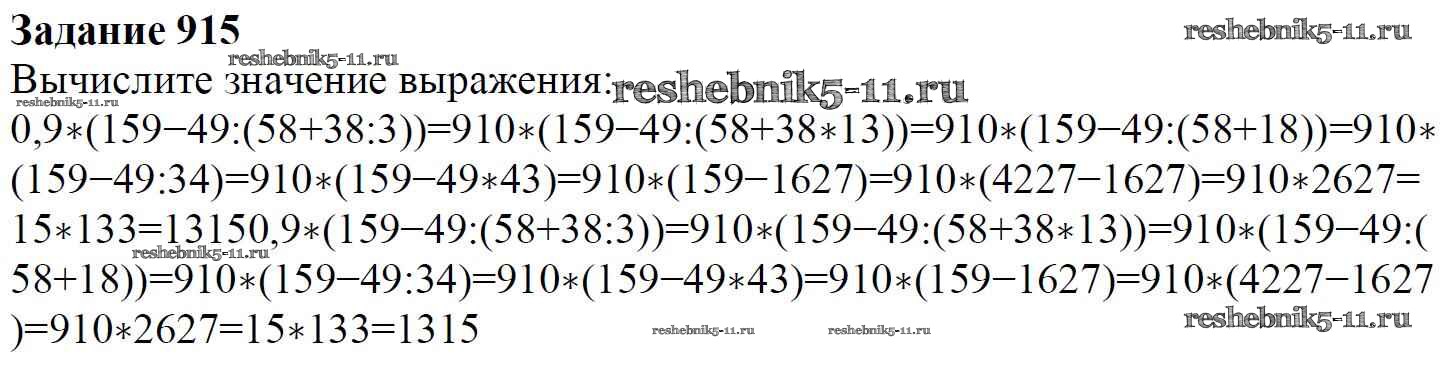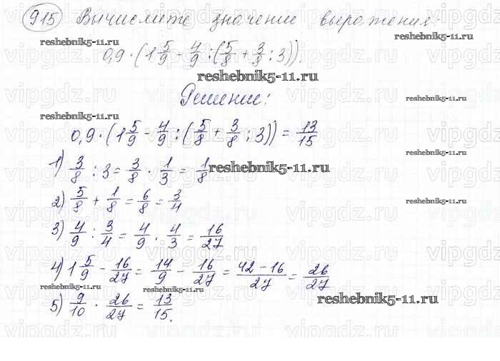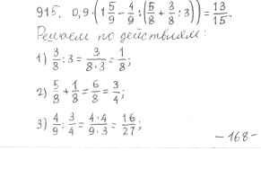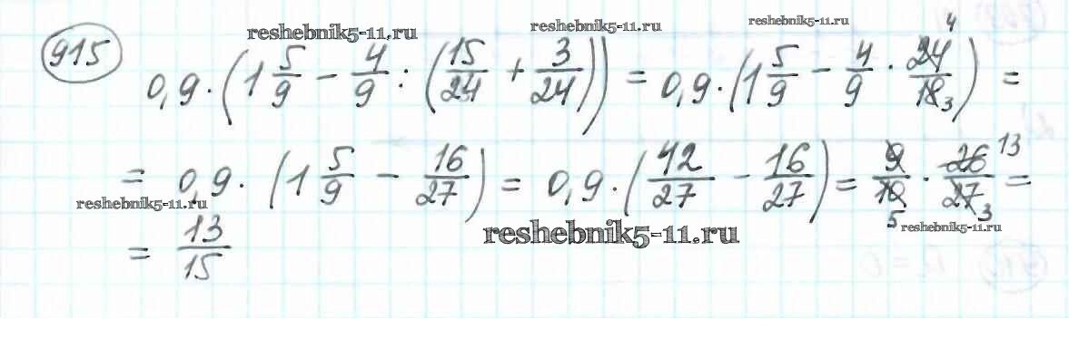 Готовая домашняя работа с ответами по Математике за 6 класс Мерзляк, Полонский, Якир Учебник Алгоритм успеха Вентана-граф 2016 ФГОС - Глава 4. Рациональные числа и действия над ними (упражнения) 915