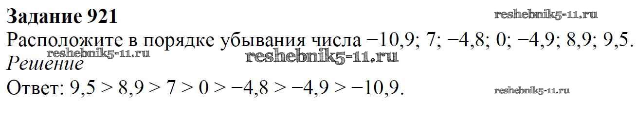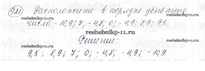 Готовая домашняя работа с ответами по Математике за 6 класс Мерзляк, Полонский, Якир Учебник Алгоритм успеха Вентана-граф 2016 ФГОС - Глава 4. Рациональные числа и действия над ними (упражнения) 921