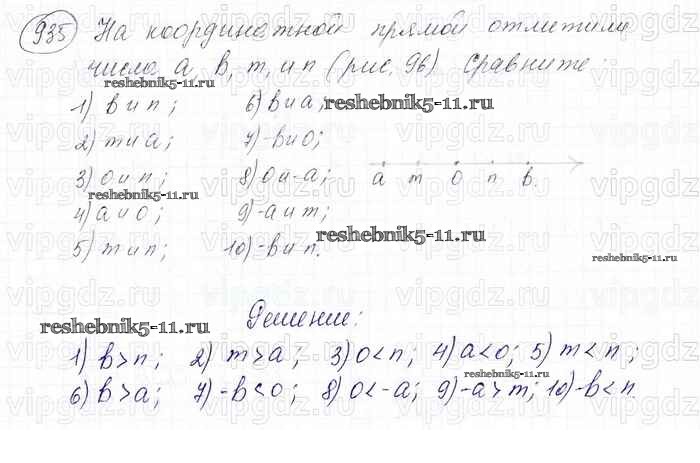Готовая домашняя работа с ответами по Математике за 6 класс Мерзляк, Полонский, Якир Учебник Алгоритм успеха Вентана-граф 2016 ФГОС - Глава 4. Рациональные числа и действия над ними (упражнения) 935